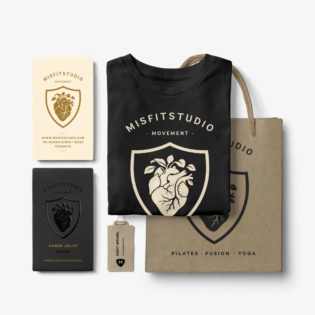 I created a brand about profound transformation, with the heart icon serving as both mirror and map for the kind of journey Misfit invited its community to embrace. The design balanced boldness with humanity, maintaining enough edge to resonate with Toronto's Queen West creative scene while remaining accessible to seekers across experience levels.Comprehensive Brand Ecosystem Development
